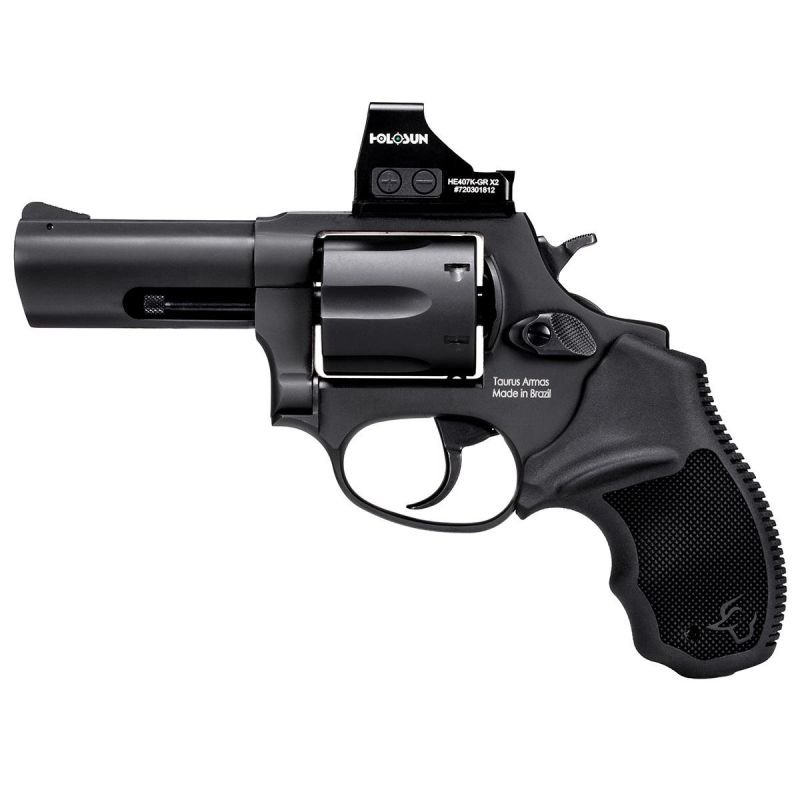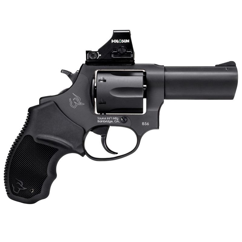 O REVÓLVER TAURUS 856 possui capacidade de 6 tiros e calibre .38 SPL. Perfeito para o porte velado, possui punho anatômico de borracha que torna confortável sua utilização. É oferecido em acabamento preto fosco, mantendo assim sua discrição. O produto combina a portabilidade de uma armação pequena, alta capacidade e um cano de 3″, permitindo assim disparos mais precisos. Aliado ao calibre .38SPL