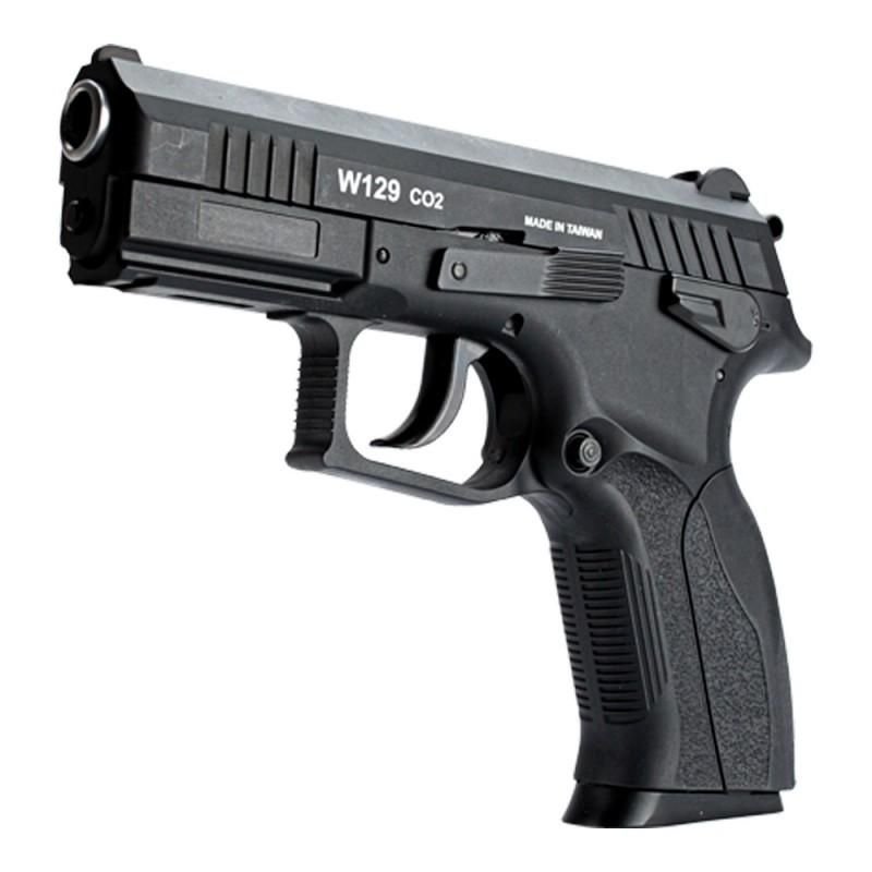 Pistola de Pressão Co2 W129, fabricada pela Wingun é uma pistola robusta e de alta qualidade com sistema Blowback, que torna a experiência de tiro muito mais realista, onde a cada disparo o seu slide se movimenta para frente e para trás.