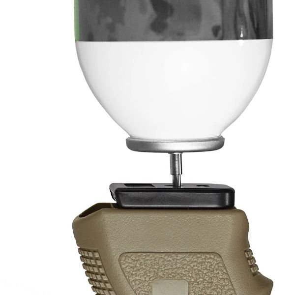 O recarregamento se dá pela retirada do Magazine e a inserção da ponteira do tubo de Green Gas na válvula do Mag.