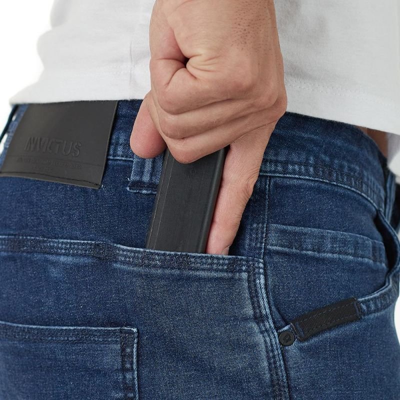 A Calça Jeans INVICTUS Legion 2.0 possui 7 bolsos estrategicamente pensados, sendo que 2 bolsos são completamente ocultos para guardar celular ou outros objetos como chaves, carteiras ou itens que devam ser carregados de forma velada. Além disso, os bolsos contam com um sistema interno de elásticos que tem a função principal de acoplar 2 carregadores de pistola em cada bolso.