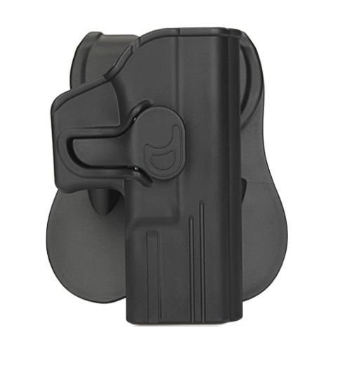 Coldre com mecanismo de trava de segurança para saque rápido