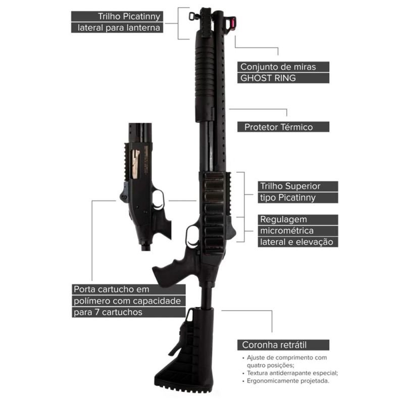 Espingarda Boito BSA 5T 84 Pump Calibre 12 Tatical