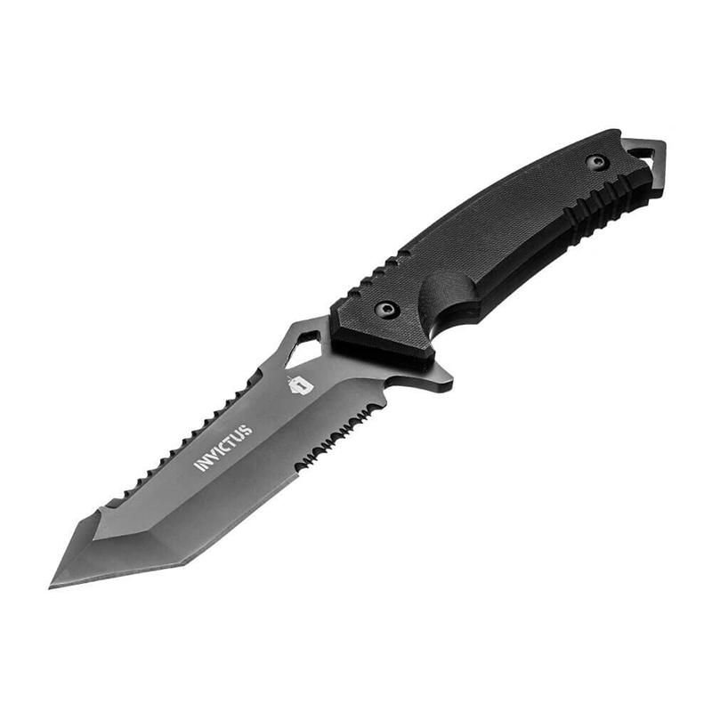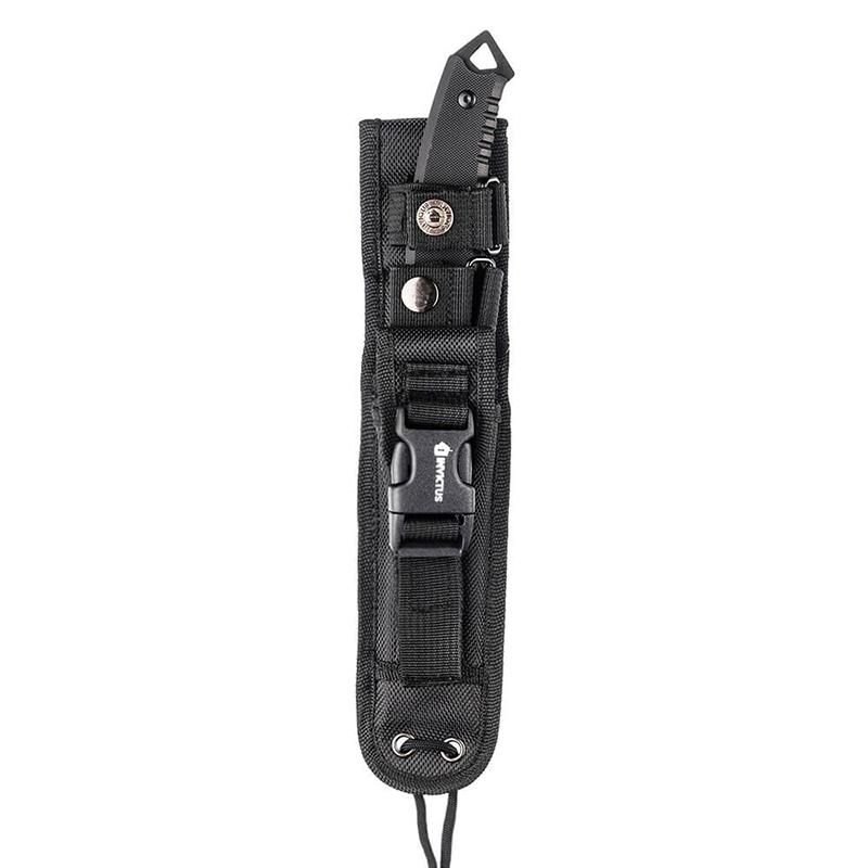 A faca Bold compõe o portfólio de facas táticas INVICTUS. Possui como diferenciais, além da lâmina em aço inoxidável 420 Full Tang, de maior resistência a impactos e maior durabilidade, pomo metálico (quebra vidro), orifício para fiel e bainha em nylon balístico 1680 D com sistema MOLLE e bolso externo. Possui também cabo de fibra de vidro G10, resistente a altas temperaturas, ao desgaste do dia a dia e a umidade.