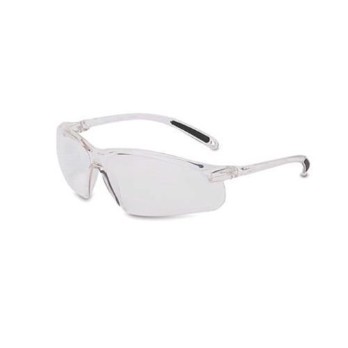 Possui armação e visor curvo confeccionados em uma única peça de policarbonato incolor, com ponte e apoio nasal injetados do mesmo material;
